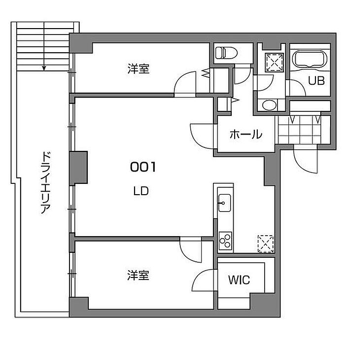 新宿7丁目マンション 001 2LDK/-1階