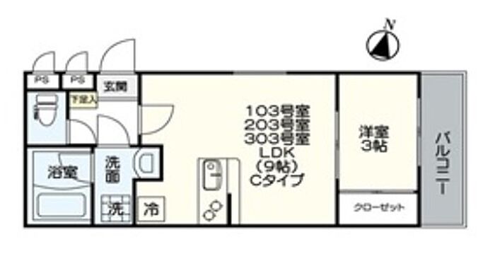 アルバーノ中村vermilion 103 1LDK/1階
