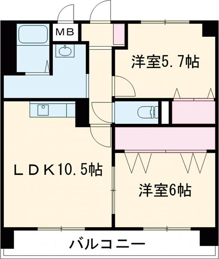 洋:5.7畳 洋:6畳 LDK:10.5畳)