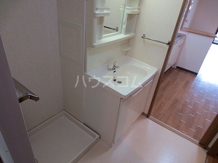 身支度に必要となる様々なアイテムを収納可能なスペースがある独立洗面台が付いています。