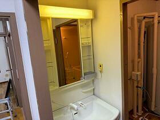 独立した洗面所があり、身支度にもお使いいただけます。こちらの物件はマンションです。