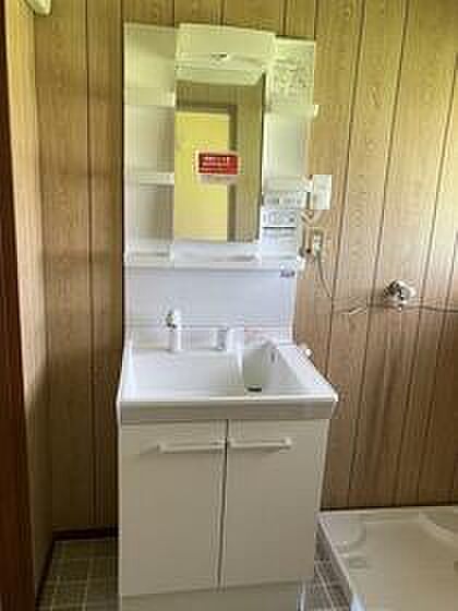化粧品や洗面道具といった小物もスッキリまとめて収納できる独立洗面台が付いております。