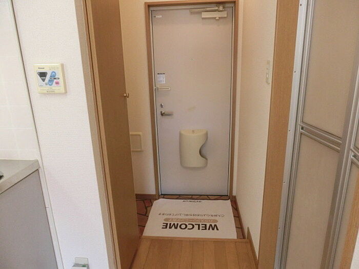 TVインターホンで、モニターから来訪者が確認できます。こちらの物件はアパートです。