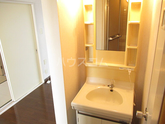 化粧品や洗面道具といった小物をまとめて収納できる独立洗面台があります。駐輪場付きの物件です。