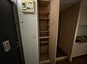 洋服や日用品をまとめて収納できる収納棚がついた物件です。お部屋の広さ32.6平米。