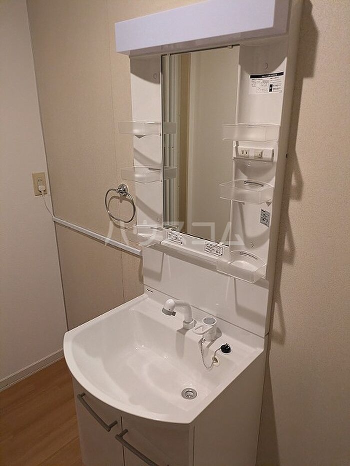 化粧品や洗面道具といった小物もスッキリまとめて収納できる独立洗面台があります。