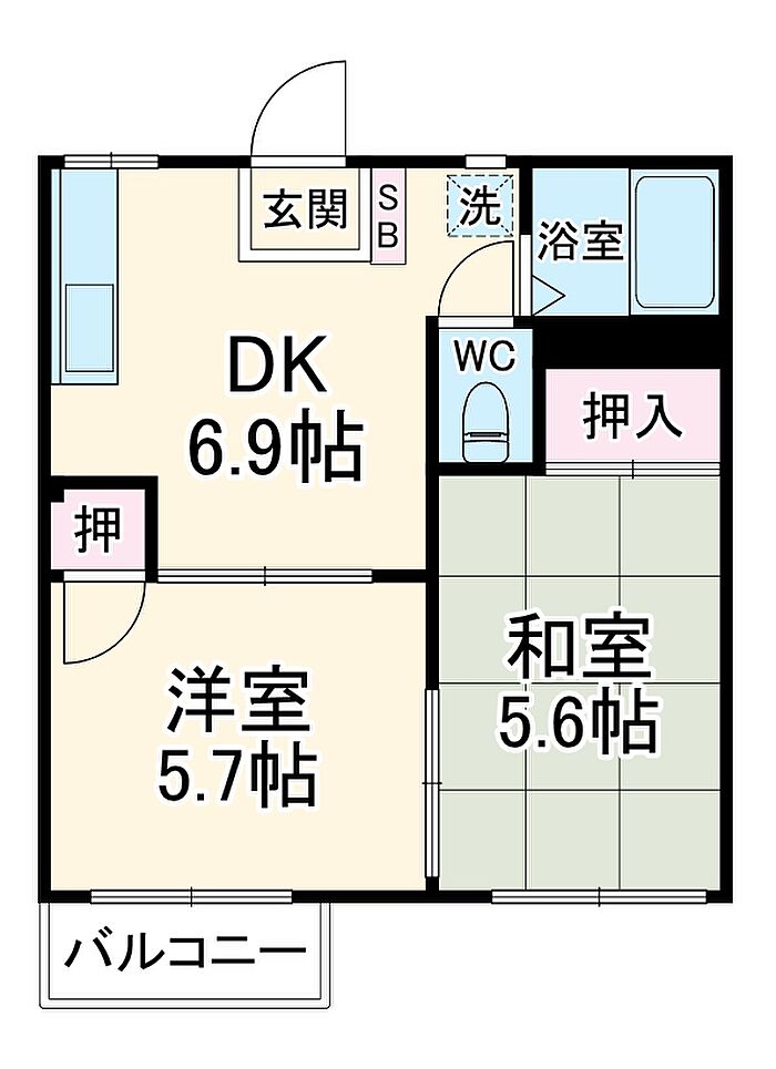 サンヒルズ 202 2DK/2階