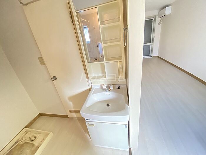 身支度に必要となる様々なアイテムを収納できるスペースがある洗面化粧台が付いています。