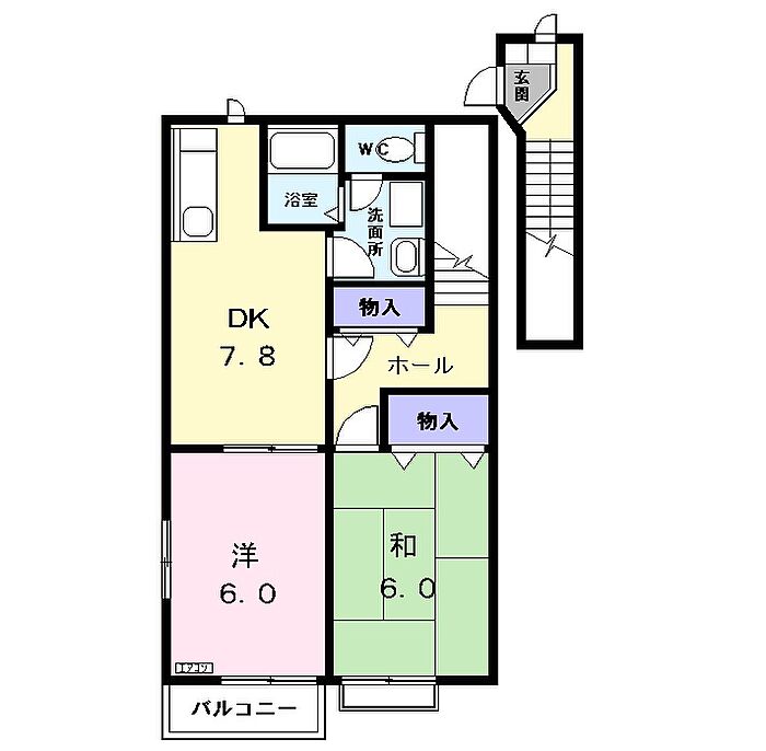 プリマベーラB 203 2DK/2階