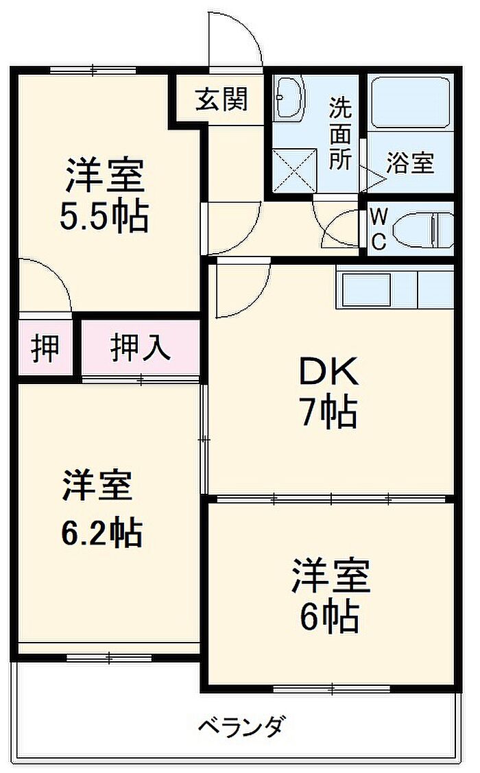 サングリーンハイツ 206 3DK/2階