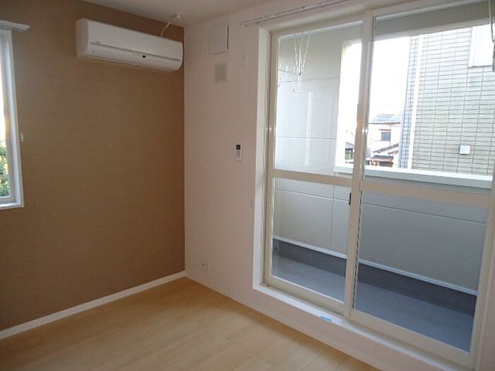 モニターから顔が見えるTVインターホン付きです。バルコニーがある物件です。