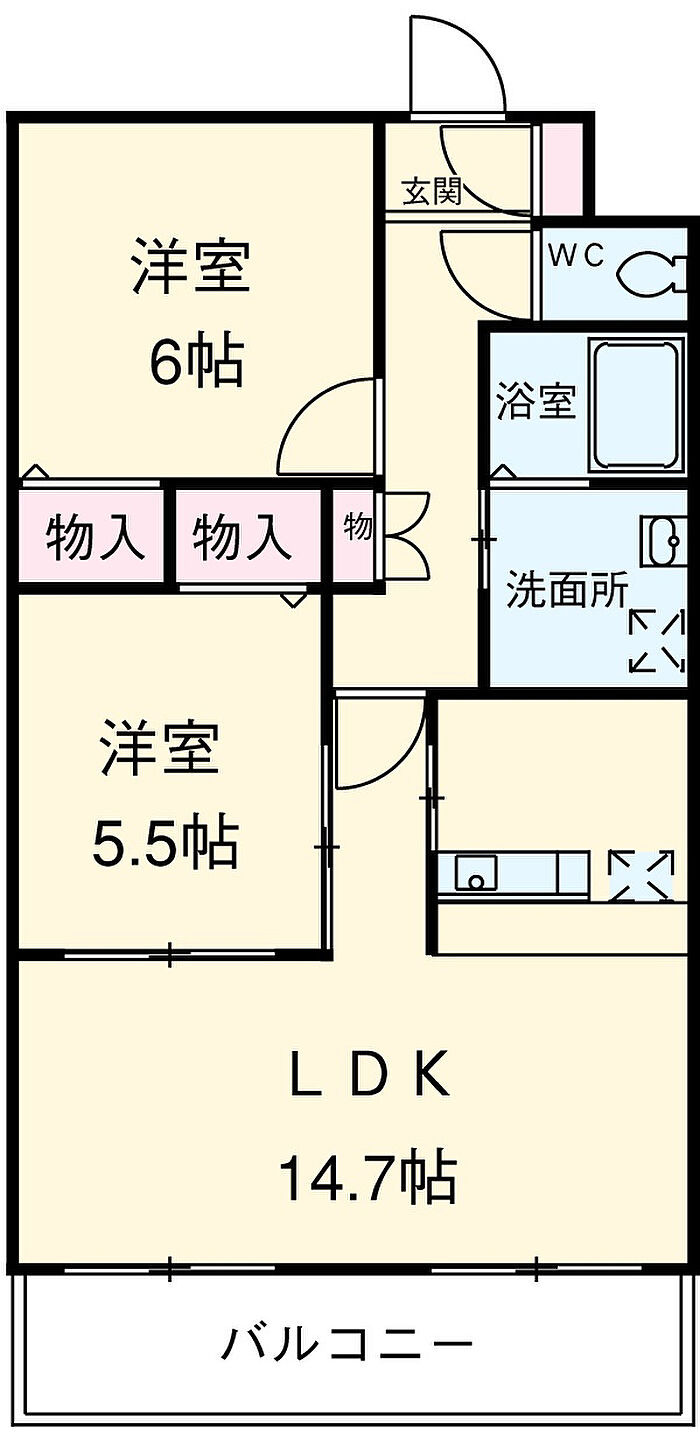 クレセール ウェスト 102 2LDK/1階