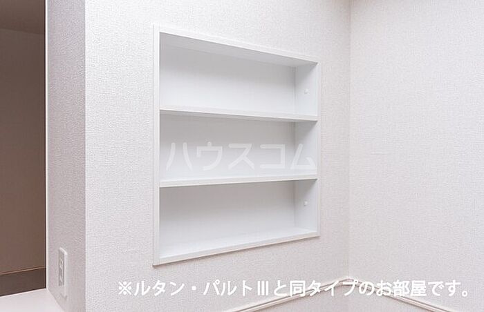 洋服や日用品をまとめて収納できる収納棚がついた物件です。新しく綺麗な新築物件です。