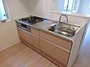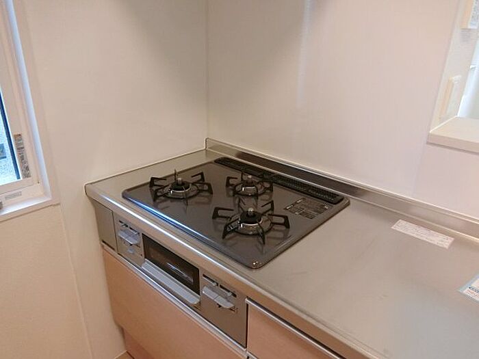 三口コンロが付いた物件です。手間をかけず衛生的に扱えるシステムキッチンは、収納もたっぷり。