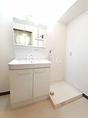 化粧品や洗面道具といった小物をまとめて収納できる洗面化粧台を採用しています。