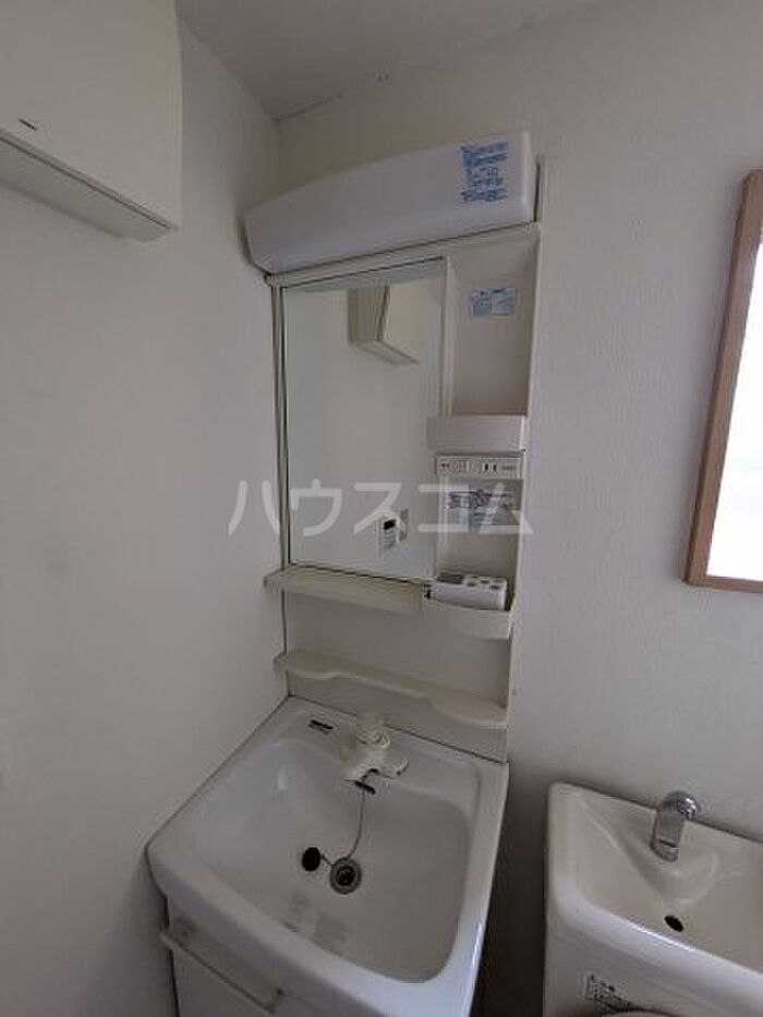 化粧品やスタイリング剤などをまとめて出し入れして、サッと身支度を整えられる独立洗面台があります。