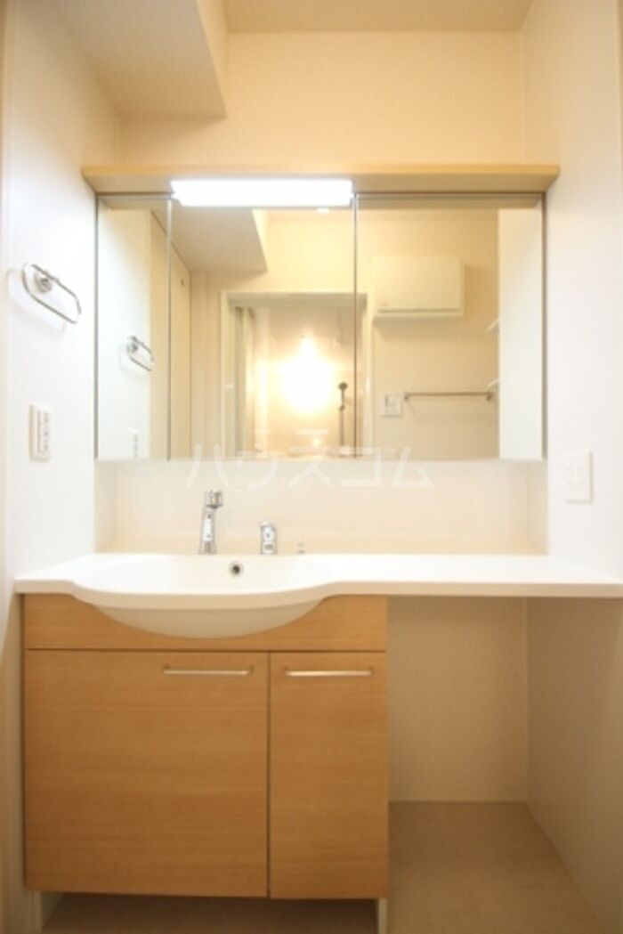 身支度に必要となる様々なアイテムを収納可能なスペースがある独立洗面台を備えております。