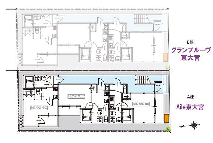 Aile東大宮(エールヒガシオオミヤ) 301 1K/3階