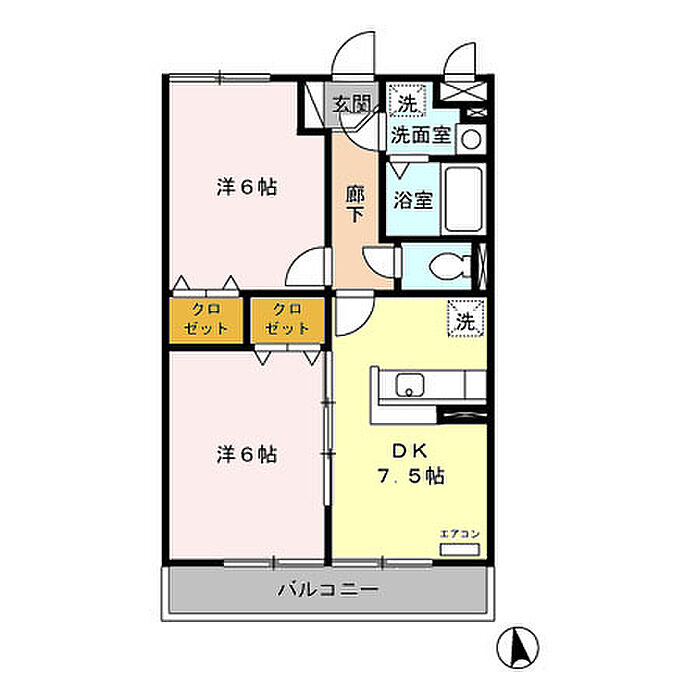 グランドュール 2DK/2階