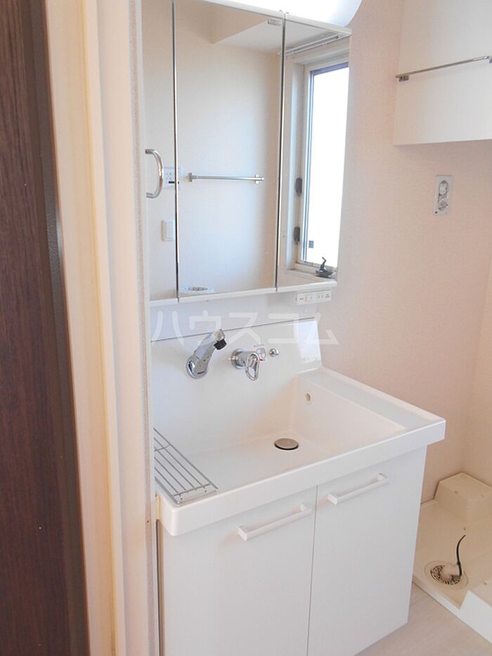 化粧品や洗面道具といった小物もスッキリまとめて収納できる独立洗面台を採用しています。