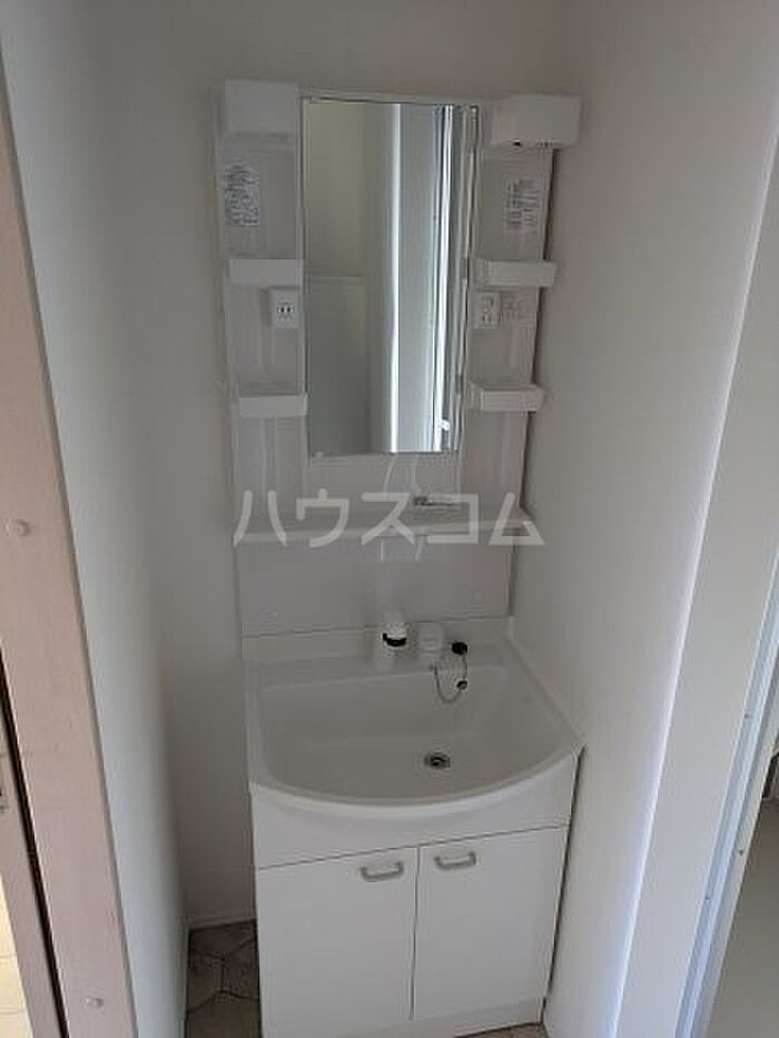 忙しい朝でも鏡を見ながらサッと身支度を整えることができる独立洗面台があります。