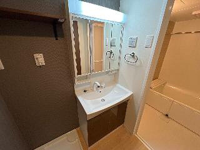 浴室乾燥機を設置しているので、外干しできないときも居室の一部を物干しスペースにしなくて済みます。