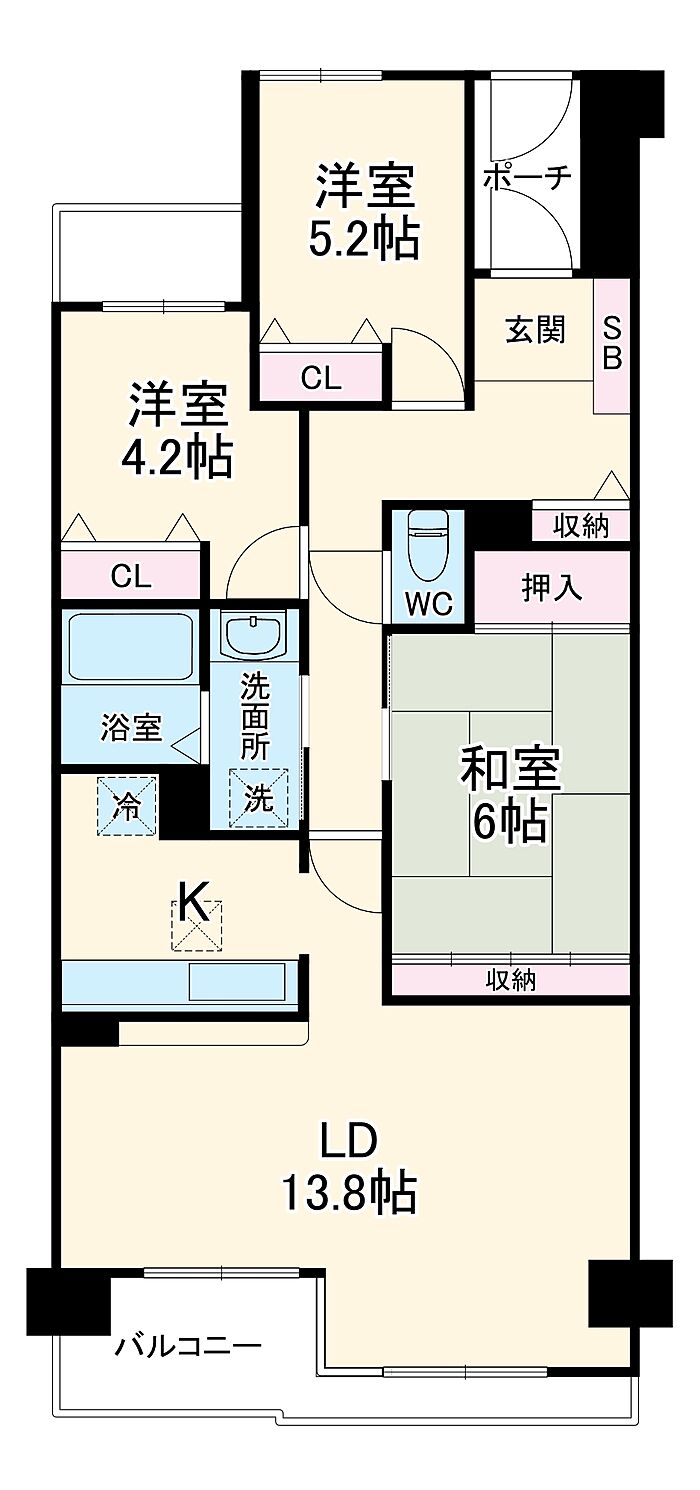リビングダイニングキッチン 13.8帖)