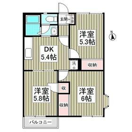クレセントハイム 201 3DK/2階
