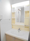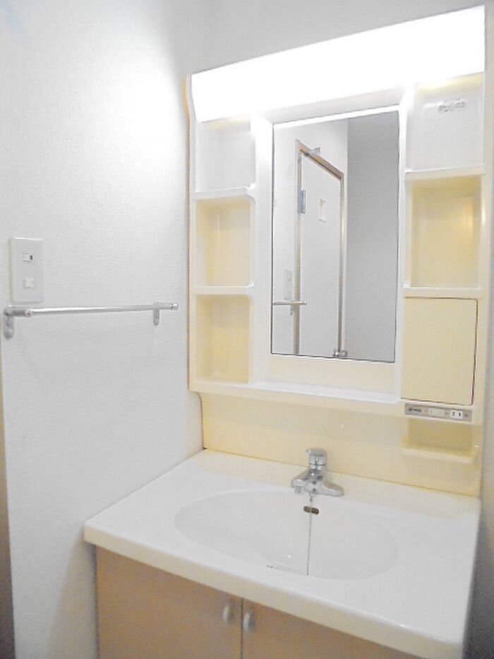 散らかりやすい洗面台回りも、化粧台付きで整理整頓ができます。駐輪場が併設されている物件です。