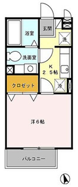 ラ・オート・リズィール 203 1K/2階