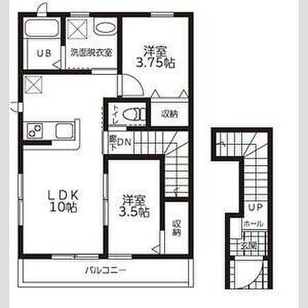 洋:3.5畳 洋:3.75畳 LDK:10畳)