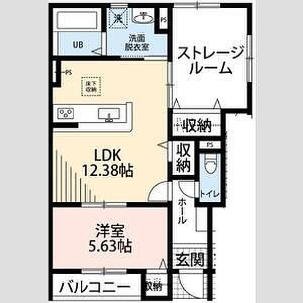 LDK:12.38畳 洋:5.63畳 S:6.12畳)