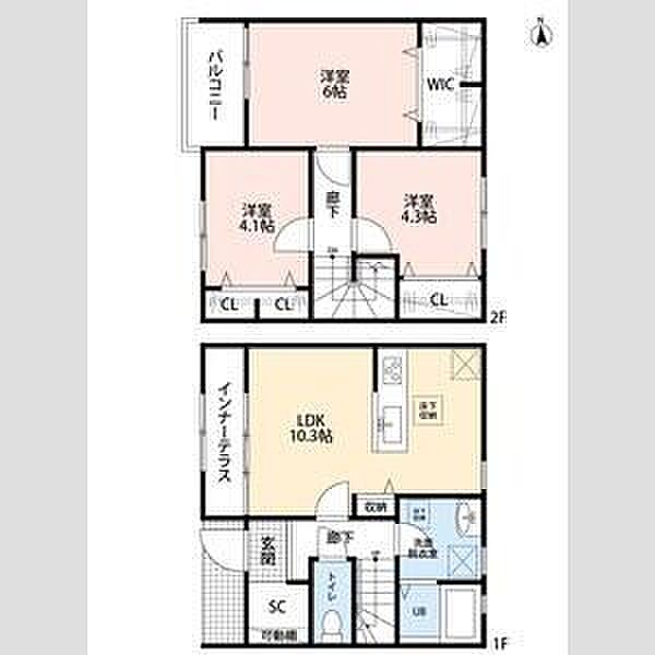 LDK:10.3畳 洋:6畳 洋:4.3畳 洋:4.1畳)