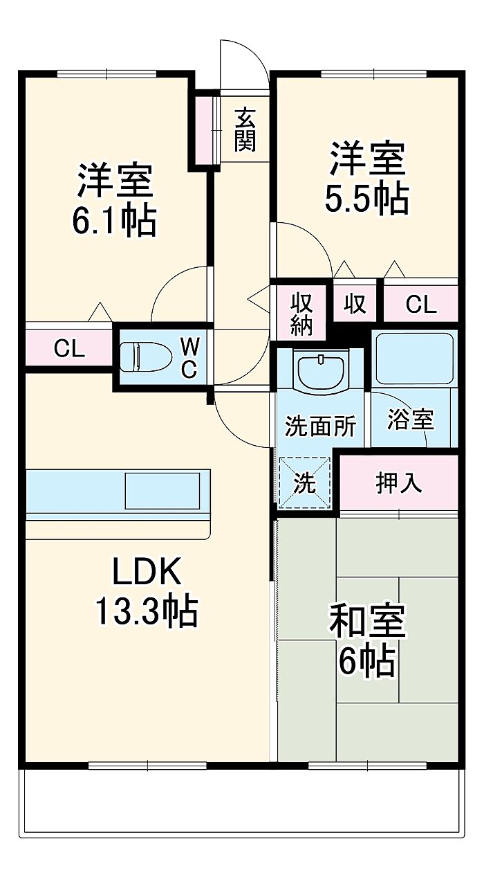 収納はクロゼット・シューズボックスなど豊富なので、衣類や履き物の整理がしやすく便利です。