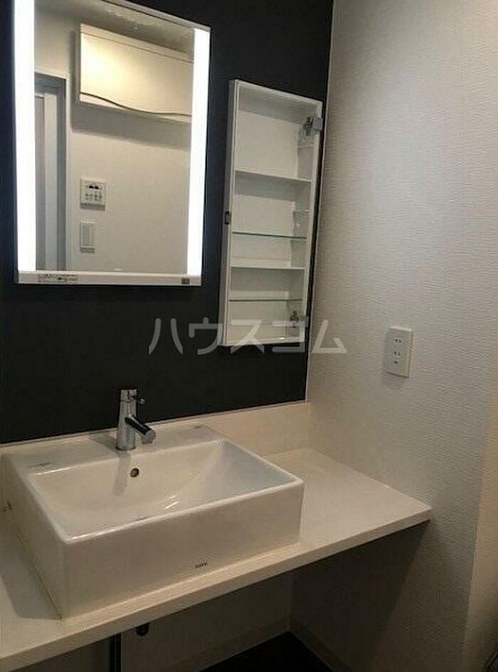 身だしなみのチェックができる、洗面化粧台があります。防犯対策もバッチリなマンションタイプの物件です。