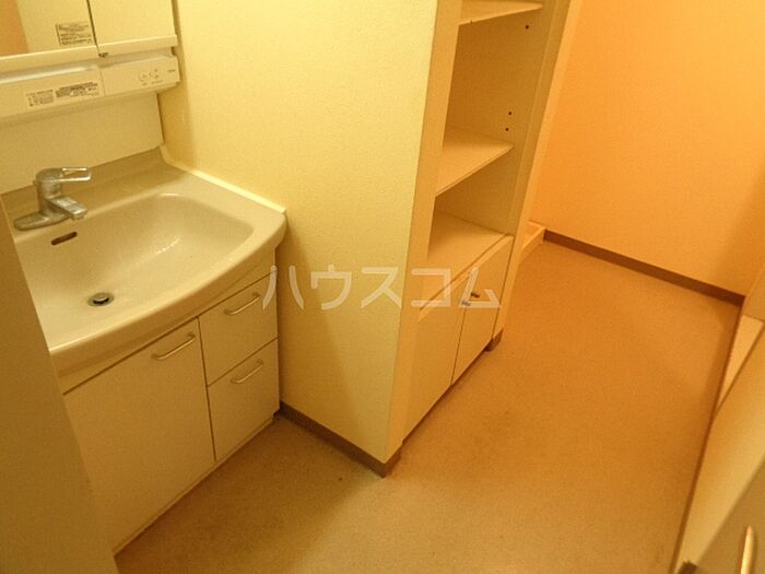 化粧品や洗面道具といった小物もスッキリまとめて収納できる独立洗面台が付いております。