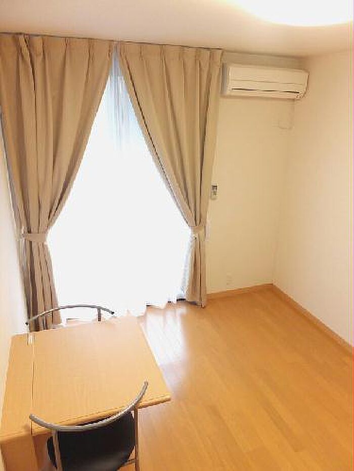 梅雨のジメジメした湿気も、エアコン付きの物件なら安心です。マンションタイプのお部屋です。