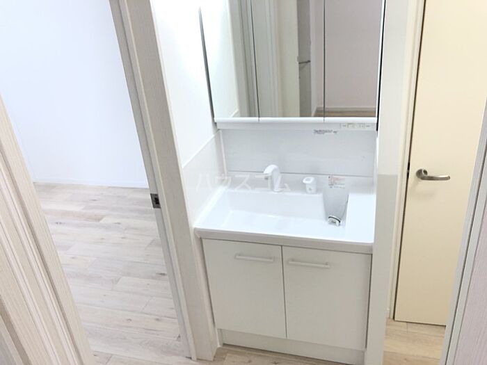 化粧品や洗面道具といった小物もスッキリまとめて収納できる独立洗面台が付いております。