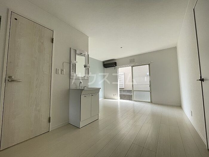 独立洗面台が付いているので、洗面台前で身支度をサッと整えることができます。バルコニー付きの物件です。