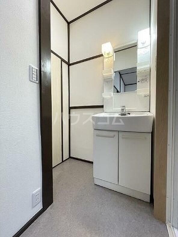 独立した洗面所がある物件です。この物件のお風呂は追い炊き機能がついています。