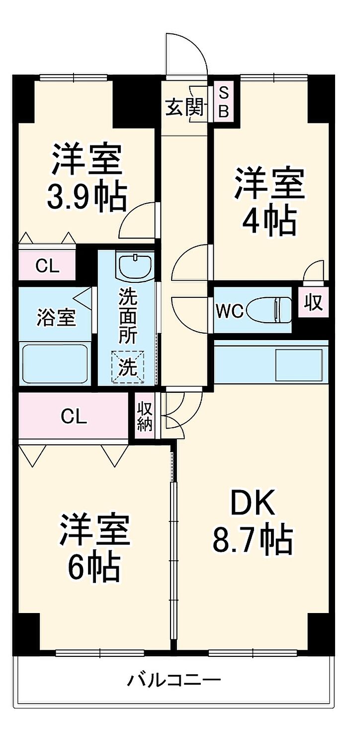 収納はクロゼット・シューズボックスなど豊富なので、衣類や履き物の整理がしやすく便利です。