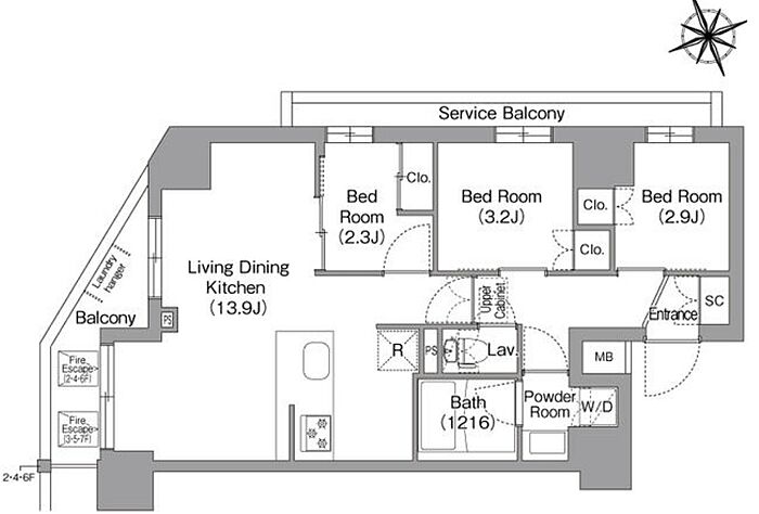 洋室 2.3帖)