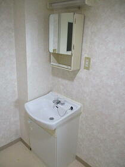 化粧品や洗面道具といった小物もスッキリまとめて収納できる独立洗面台が付いております。