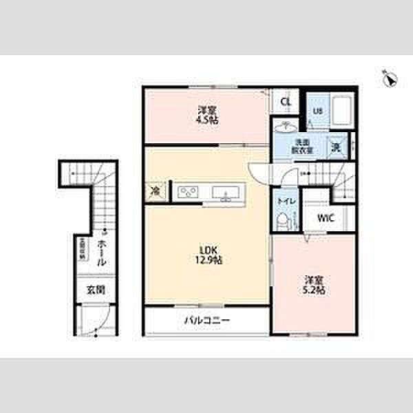 LDK:12.9畳 洋:5.2畳 洋:4.5畳)
