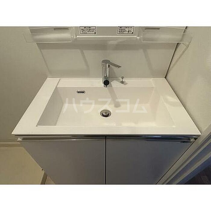 化粧品や洗面道具といった小物をまとめて収納できる独立洗面台を採用しています。