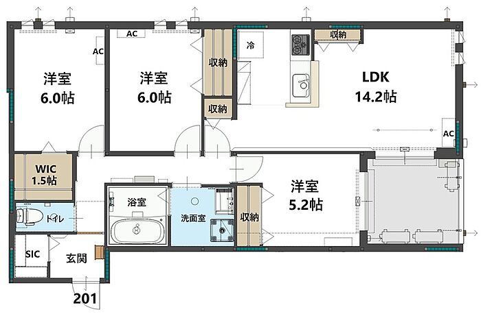 (リビングダイニングキッチン 14.2帖