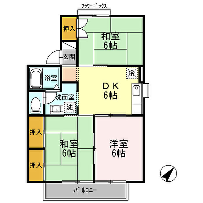 セジュールK 201 3DK/2階