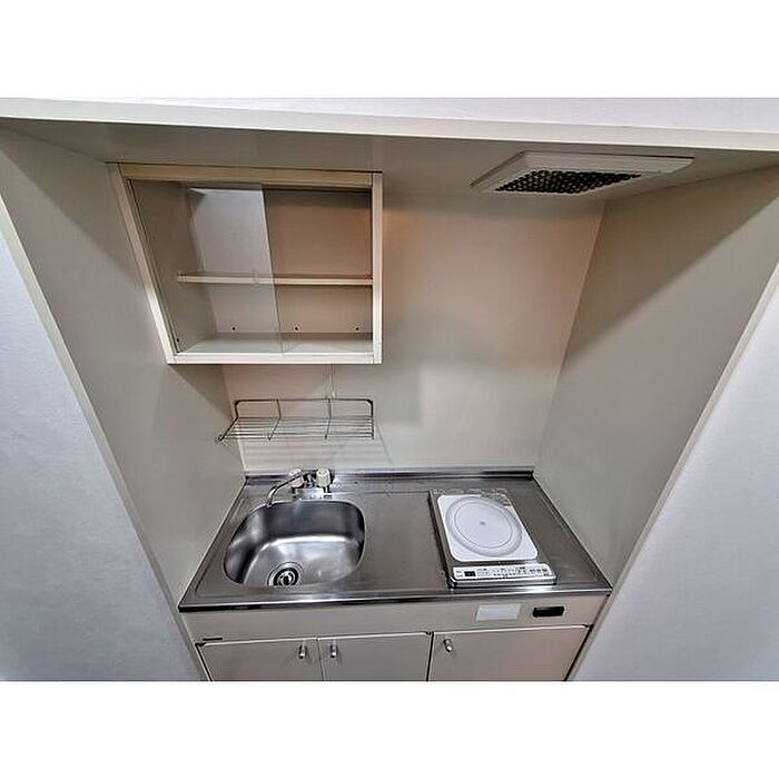 室内設備はエアコン・洗面台など大変充実しております。一口コンロが付いている物件です。