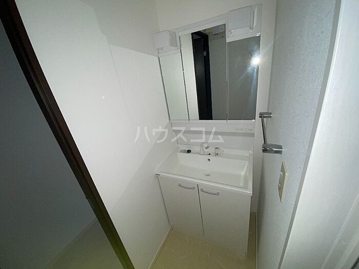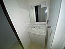 洗面所は浴室から独立しており、お風呂の湿気で曇りにくくなっています。エレベーター付き物件です。
