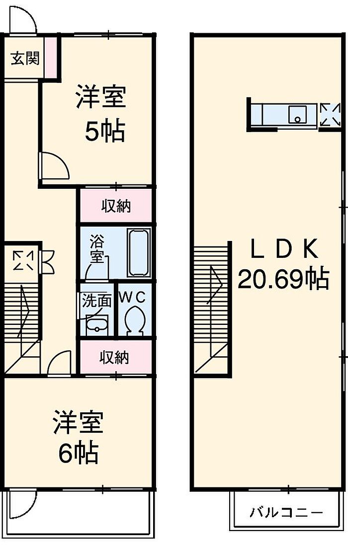 リビングダイニングキッチン 20.6帖)